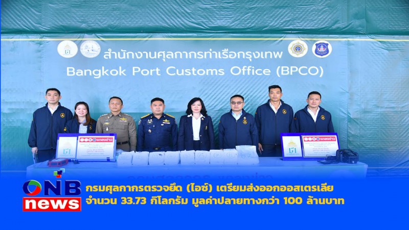 กรมศุลกากรตรวจยึด (ไอซ์) เตรียมส่งออกออสเตรเลีย จำนวน 33.73 กิโลกรัม มูลค่าปลายทางกว่า 100 ล้านบาท