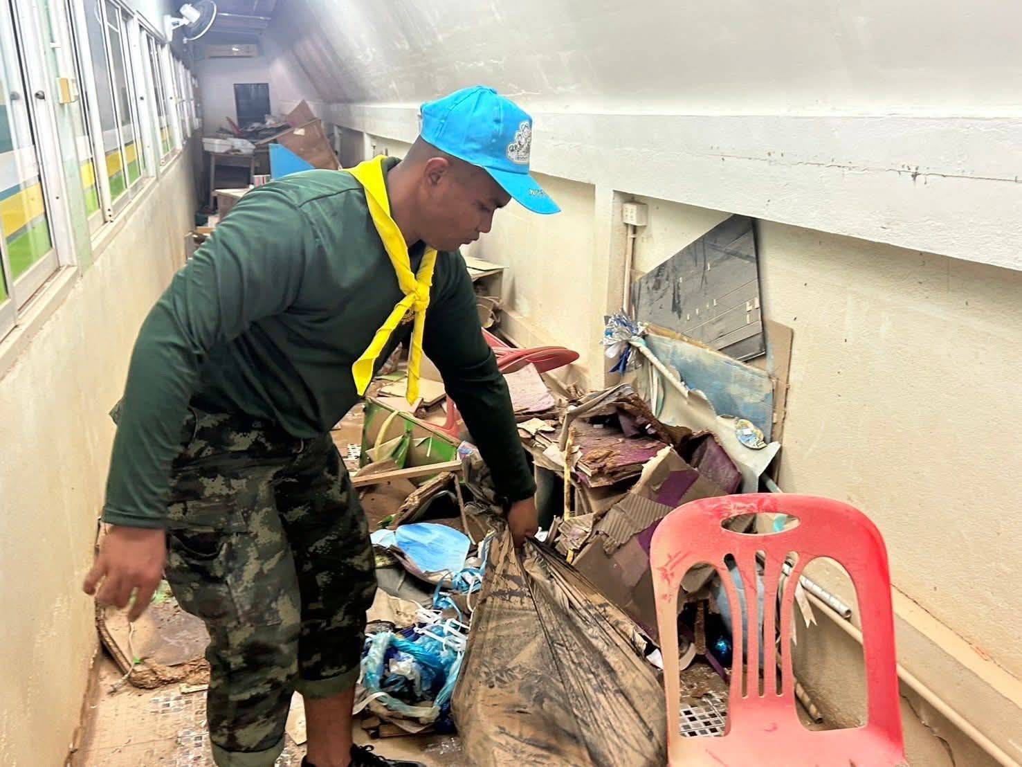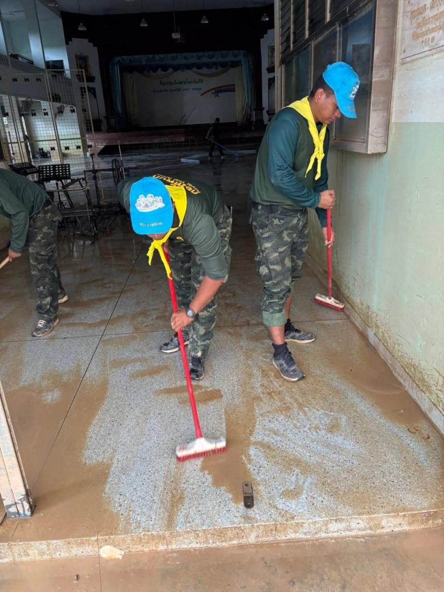 กรมทหารราบที่ 5 ระดมกำลังจิตอาสาพระราชทานลงพื้นที่ช่วยเหลือ ฟื้นฟูโรงเรียนที่ได้รับผลกระทบน้ำท่วมในอำเภอหาดใหญ่