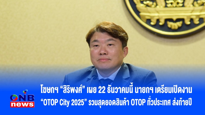โฆษกฯ “สิริพงศ์” เผย 22 ธันวาคมนี้ นายกฯ เตรียมเปิดงาน OTOP City 2025 รวมสุดยอดสินค้า OTOP ทั่วประเทศ ส่งท้ายปี