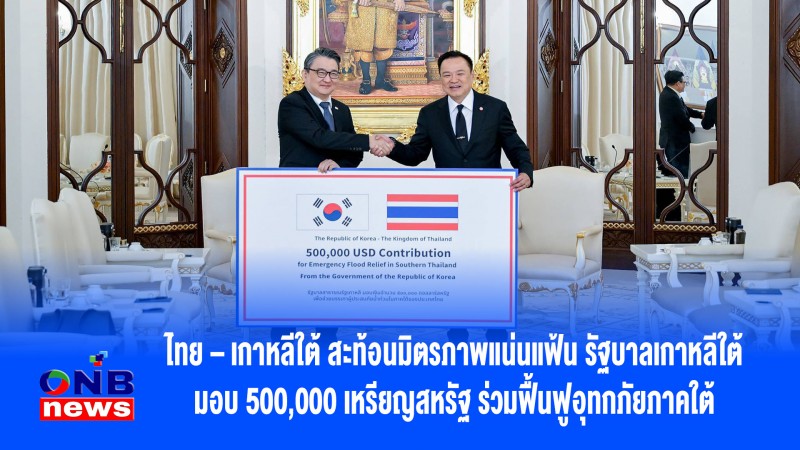 ไทย – เกาหลีใต้ สะท้อนมิตรภาพแน่นแฟ้น รัฐบาลเกาหลีใต้มอบ 500,000 เหรียญสหรัฐ ร่วมฟื้นฟูอุทกภัยภาคใต้