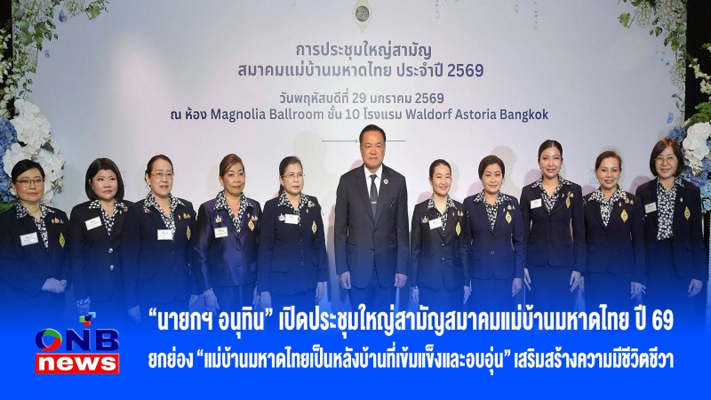 "นายกฯ อนุทิน" เปิดประชุมใหญ่สามัญสมาคมแม่บ้านมหาดไทย ปี 69 ยกย่อง "แม่บ้านมหาดไทยเป็นหลังบ้านที่เข้มแข็งและอบอุ่น" เสริมสร้างความมีชีวิตชีว