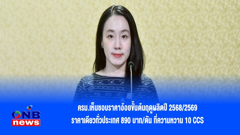 ครม.เห็นชอบราคาอ้อยขั้นต้นฤดูผลิตปี 2568/2569 ราคาเดียวทั่วประเทศ 890 บาท/ตัน ที่ความหวาน 10 CCS